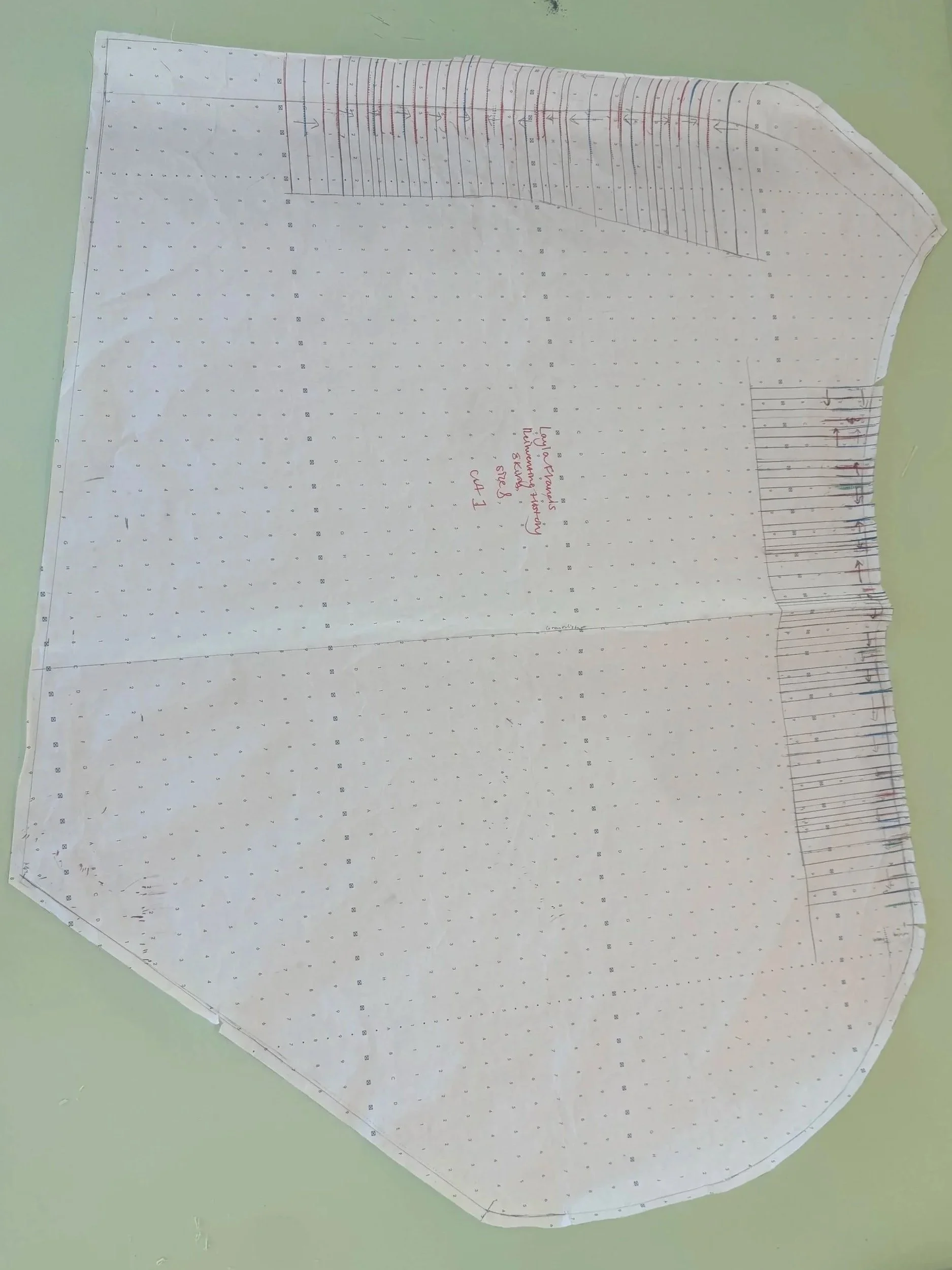 Cut from a single piece of fabric and patterned to create minimal waste, the garment demonstrates how intentional design can reduce excess while maintaining elegance. The adjustable string closure allows the wearer to slightly customize the fit, creating a secure yet fluid silhouette that adapts to the body.